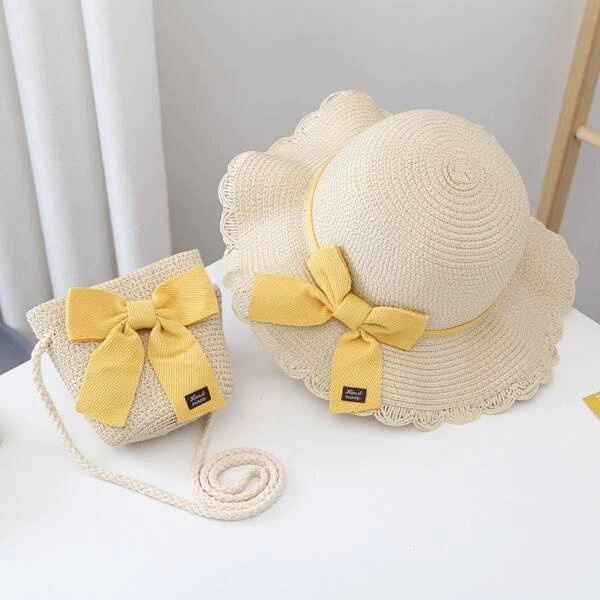 - Kapelusik ze słomy wraz z pasującą torebką zamykaną na suwak to idealny dodatek do letnich stylizacji małej dziewczynki. Nie tylko ochroni małą fashionistkę przed letnim słońcem, ale także doda jej stylowej elegancji. Obwód głowy 52cm, torebeczka 14x16cm.