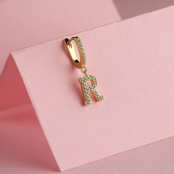 ECARLA kolczyk ze stali szlachetnej platerowanej 14k złotem Literka R KST1683R