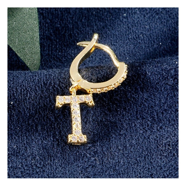 ECARLA kolczyk ze stali szlachetnej platerowanej 14k złotem Literka T KST1683T