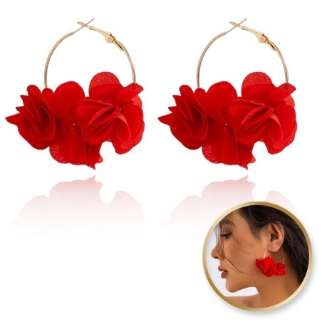 ECARLA kolczyki koła tiulowe kwiaty 6,5x5cm Czerwień K1677CZE