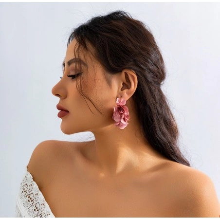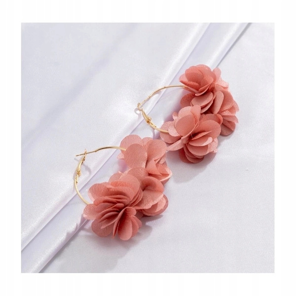 ECARLA kolczyki koła tiulowe kwiaty 6,5x5cm Róż K1677R