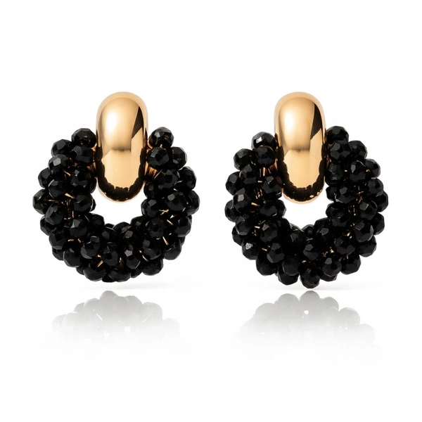 ECARLA kolczyki WIANUSZKI z koralikami Czarne K1716