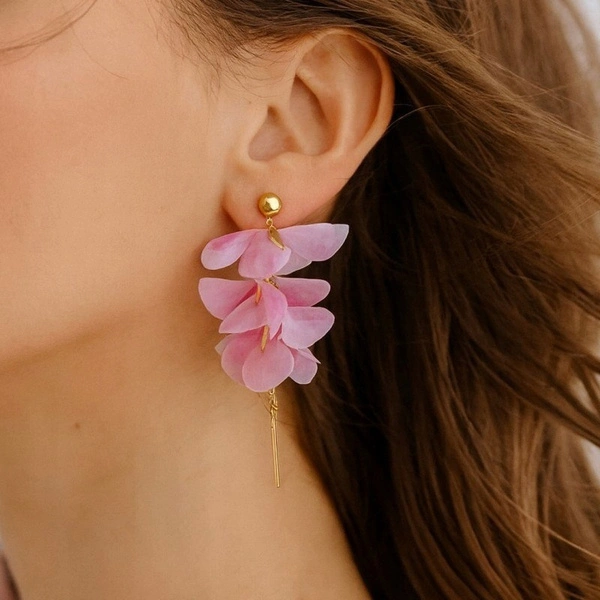 • Kolczyki sztuczne materiałowe kwiaty. Będą stanowić uzupełnienie eleganckiej kreacji i codziennego stroju. Biżuteria antyalergiczna, nie zawiera niklu ani chromu. Nie moczyć! Unikać kontaktu z wodą wtedy długo posłużą. Zapięcie: bigiel. Wymiary: 10x3cm