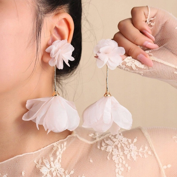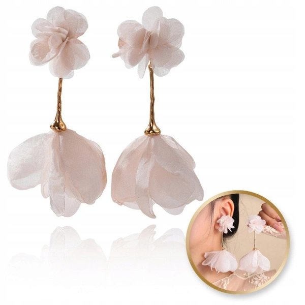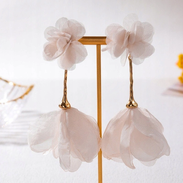 ECARLA kolczyki wiszące tiulowe kwiaty K1704