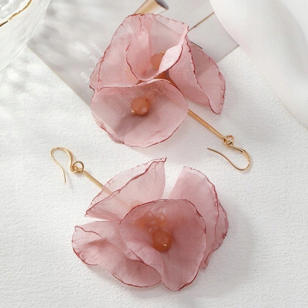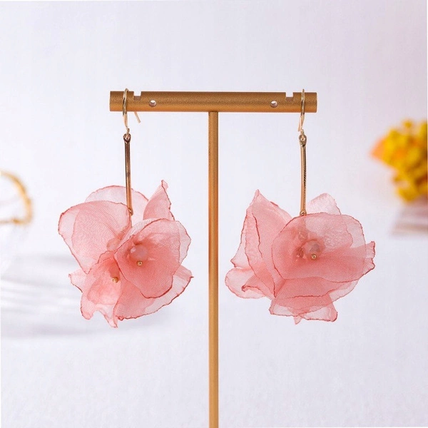 - Kolczyki wiszące, efektowne tiulowe kwiat. Będą stanowić piękne uzupełnienie eleganckiej kreacji jak i codziennego stroju. Biżuteria antyalergiczna, nie zawiera niklu ani chromu. Rodzaj zapięcia: bigiel. Wymiary: 8 x 5 cm