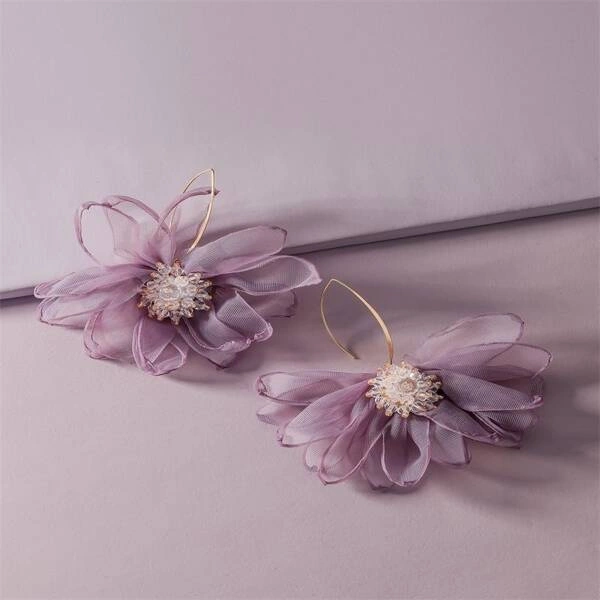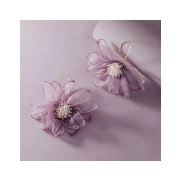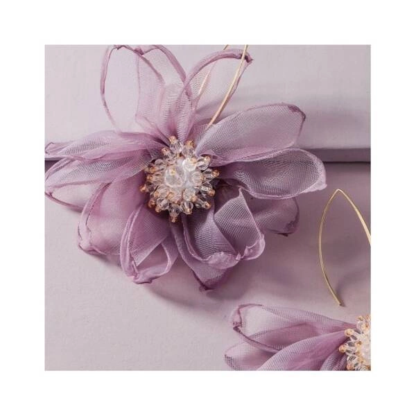 ECARLA kolczyki wiszące z kryształkami tiulowe fioletowe kwiaty K1675FIO