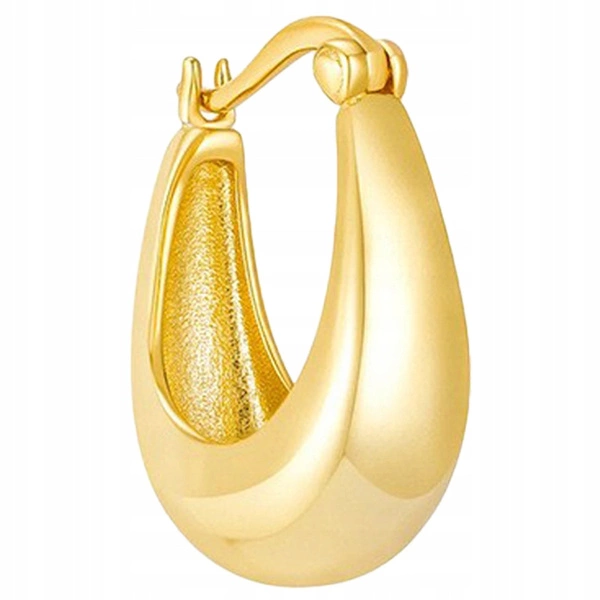 - Eleganckie kolczyki ze stali chirurgicznej platerowanej 14 karatowym złotem, która jest odporna na warunki atmosferyczne, nie ulega korozji, nie rdzewieje, nie śniedzieje. Rodzaj zapięcia: kreol. Wymiary: 1,8cm cm x 1,3cm