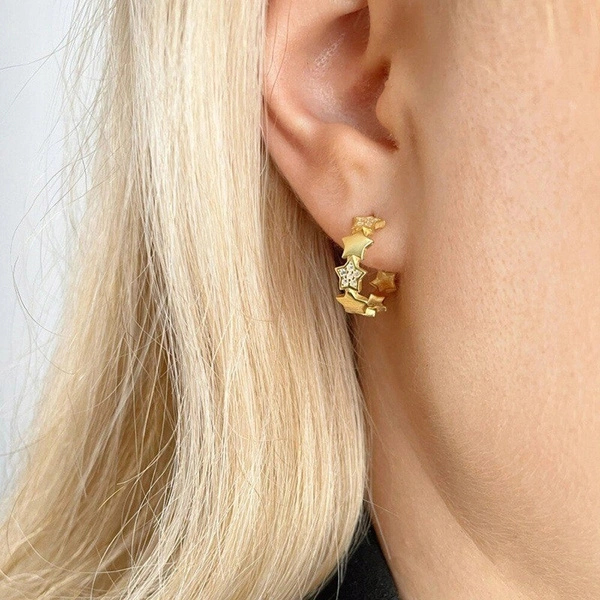 • Eleganckie kolczyki ze stali chirurgicznej platerowanej 14 karatowym złotem, która jest odporna na warunki atmosferyczne, nie ulega korozji, nie rdzewieje, nie śniedzieje. Rodzaj zapięcia: sztyft Wymiary: 1cm x 1,1 cm