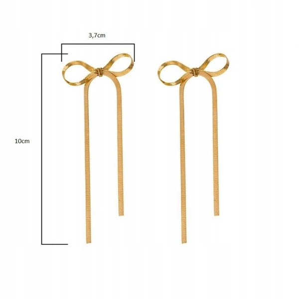 - Eleganckie kolczyki ze stali chirurgicznej platerowanej 14 karatowym złotem, która jest odporna na warunki atmosferyczne, nie ulega korozji, nie rdzewieje, nie śniedzieje. Rodzaj zapięcia: sztyft . Wymiary: 3,7cm x 10cm