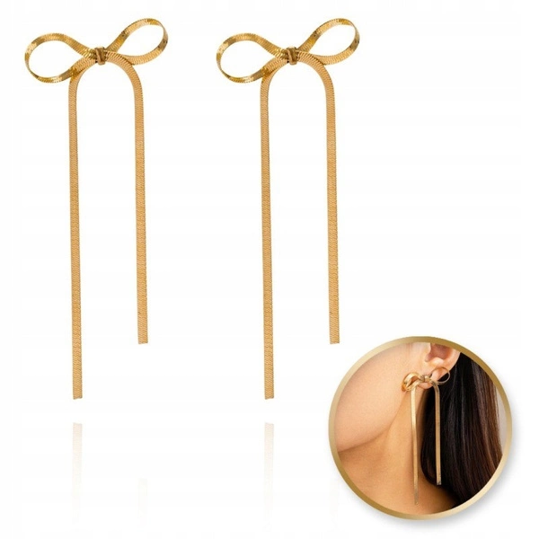 ECARLA kolczyki wiszące, złota żyłka Kokardki K1695
