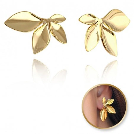 • Kolczyki ze stali chirurgicznej platerowanej 14 karatowym złotem, odporne na warunki atmosferyczne, nie ulegają korozji, nie rdzewieją, nie śniedzieją. Świetnie uzupełniają kreację i codzienny strój. Zapięcie: sztyft. Wymiary: 2,2x3,5cm. Waga: 7g.