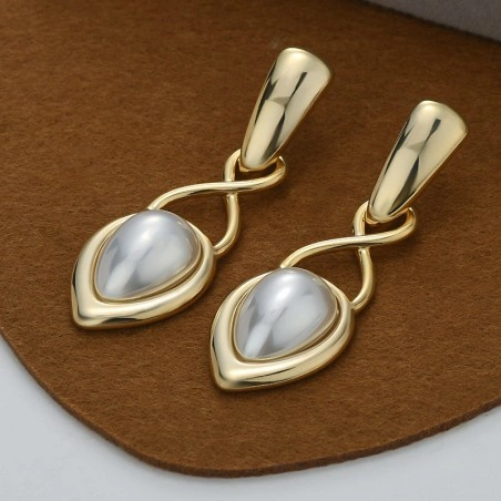 - Eleganckie kolczyki ze stali chirurgicznej platerowanej 14 karatowym złotem, która jest odporna na warunki atmosferyczne, nie ulega korozji, nie rdzewieje, nie śniedzieje. Rodzaj zapięcia: sztyft ze srebra S925. Wymiary: 5,9x1,9x0,9cm.