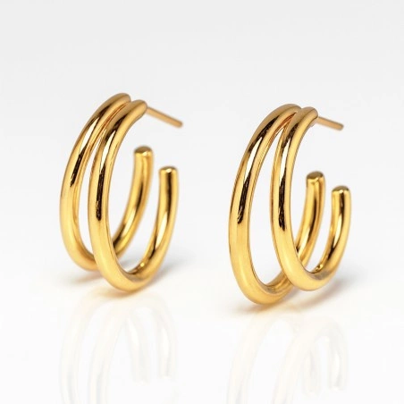 • Kolczyki ze stali chirurgicznej platerowanej 14 karatowym złotem, odporne na warunki atmosferyczne, nie ulegają korozji, nie rdzewieją, nie śniedzieją. Świetnie uzupełniają kreację i codzienny strój. Zapięcie: sztyft. Wymiary: 2,3x1cm. Waga: 3g.