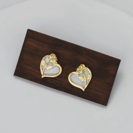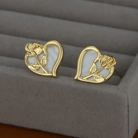 ECARLA kolczyki ze stali szlachetnej platerowanej 14k złotem SERCE RÓŻĄ KST3368