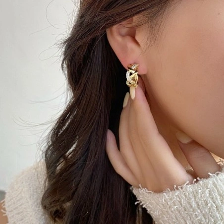 - Eleganckie kolczyki ze stali chirurgicznej platerowanej 14 karatowym złotem, która jest odporna na warunki atmosferyczne, nie ulega korozji, nie rdzewieje, nie śniedzieje. Rodzaj zapięcia: sztyft. Wymiary: 2x1,2x1,7cm. Zapięcie: sztyft srebro S925.