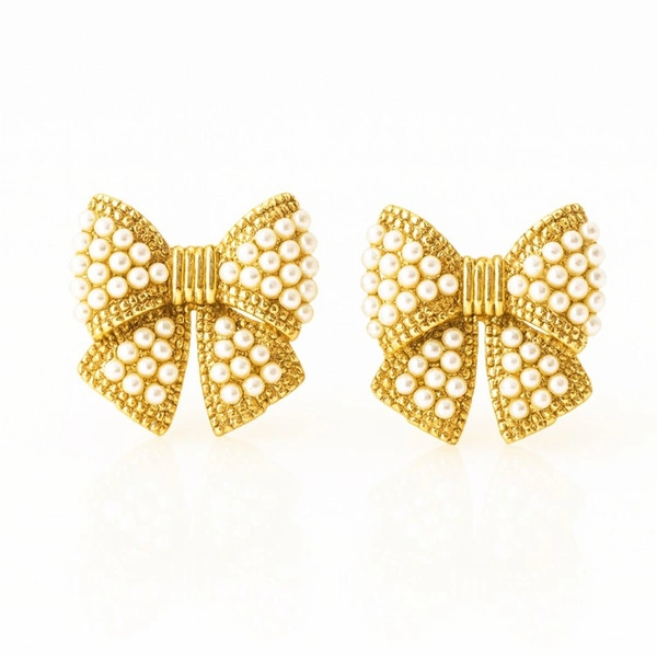 ECARLA kolczyki ze stali szlachetnej platerowanej złotem KOKARDY PEREŁKI KST3511
