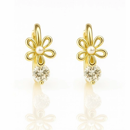 ECARLA kolczyki ze stali szlachetnej platerowanej złotem KWIAT CYRKONIA KST3519