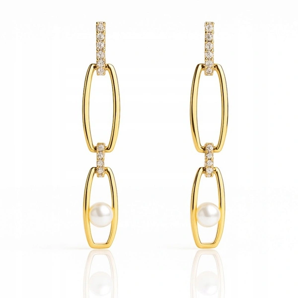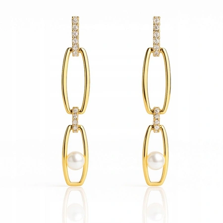 ECARLA kolczyki ze stali szlachetnej platerowanej złotem wiszące PERŁA KST3522