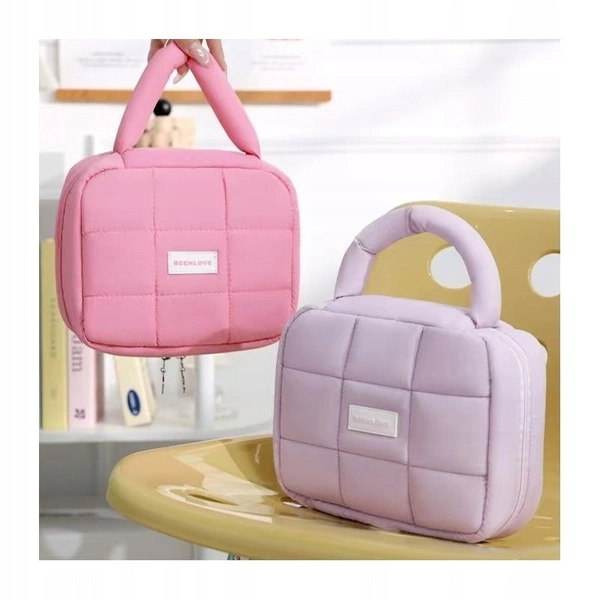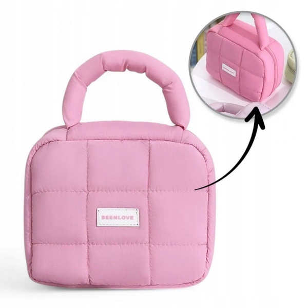 ECARLA kosmetyczka kuferek pikowana z rączką Różowa KS139R
