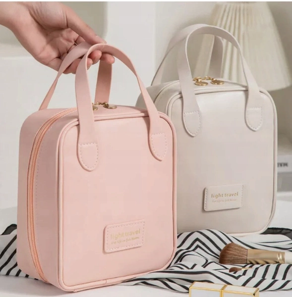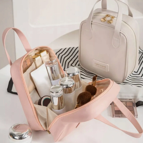 • Wykonana z miękkiego, wodoodpornego materiału.Kosmetyczka w sam raz na dłuższe podróże czy wyjazdy - jest bardzo poręczna i pojemna. W środku 1 komora z dwiema dużymi przegródkami i kilkoma mniejszymi. Wymiary: 17cm x 7cm x 19cm