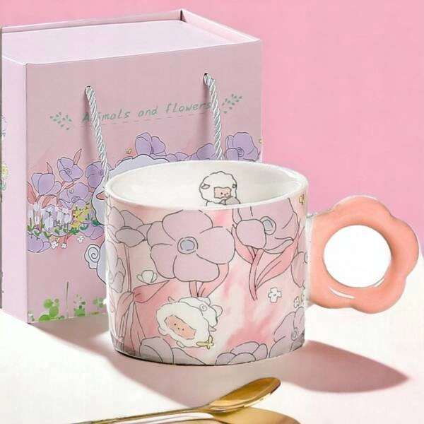- Kubek ceramiczny z wiosennym, kwiatowym motywem. Idealny gadżet dla każdego miłośnika kawy czy herbaty. Pojemność: max280 ml. Kubek 8,5x7cm. Łyżeczka: długość 12cm. Zestaw zapakowany w ozdobne kartonowe pudełko. W zestawie urocza łyżeczka.