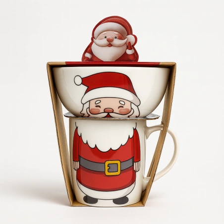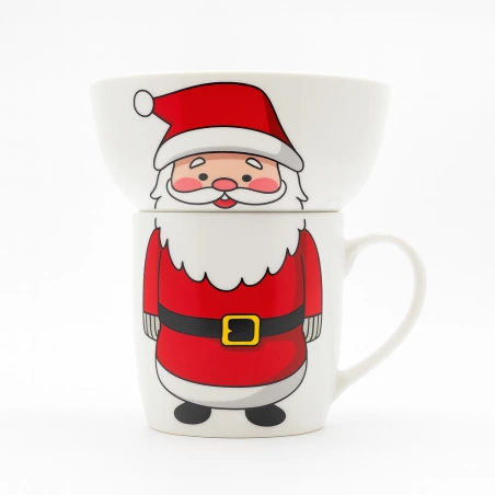 - Kubek i miseczka wykona z ceramiki ze świątecznym nadrukiem.Wymiary kubka: 9x8,5cm. Wymiary miseczki: 12,5x6,5cm. Produkty przeznaczone do ręcznego mycia.