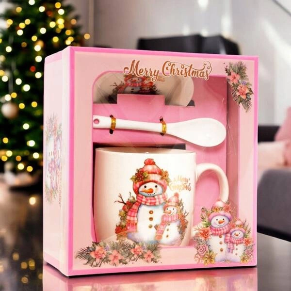 ECARLA kubek świąteczny w pudełku ze spodkiem i łyżeczką KB18WZ3 400ml