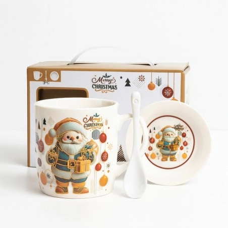 - Kubek ceramiczny z motywem świątecznym w zestawie z pokrywką i łyżeczką. Średnica pokrywki: 9,5cm. Długość łyżeczki: 13cm. Produkt przeznaczony do ręcznego mycia. Zestaw zapakowany w ozdobne kartonowe pudełko. Poczuj świąteczny klimat!