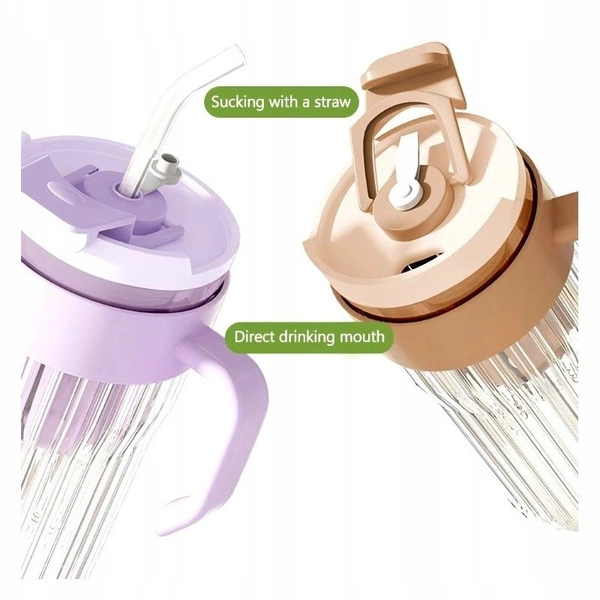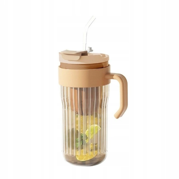 - Bidon, kubek do ciepłych i zimnych napojów ze słomką. Posiada zamykanie (przykrywkę) oraz ustnik do picia. Kubek i słomka wykonana jest ze szkła a górna część z tritanu. Średnica kubka 8,7cm, wysokość z zawleczką 20,2cm. Nie myj w zmywarce, nie zamrażaj..