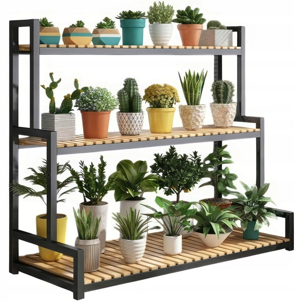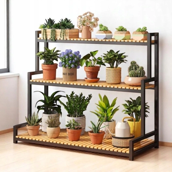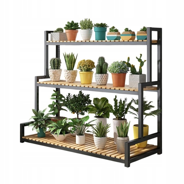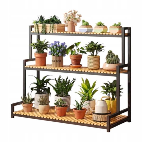 - Kwietnik, który pięknie wyeksponuje Twoje rośliny. Dzięki 3 półkom pomieści sporą ilość doniczek. Stwórz swoją własną kwietną kompozycję! Perfekcyjnie sprawdzi się na balkonie, tarasie, ogródku jak i wewnątrz domu.