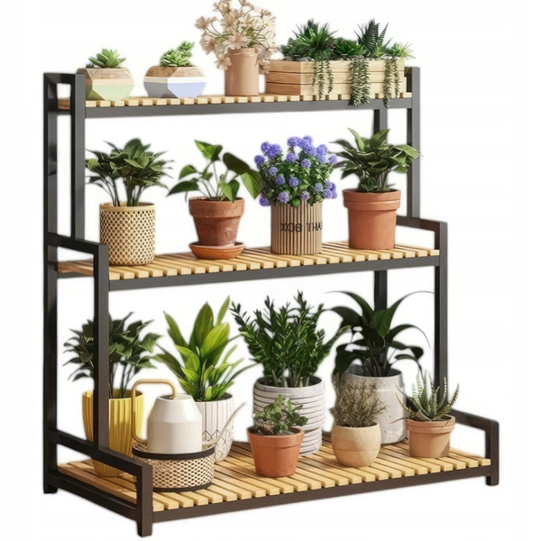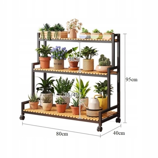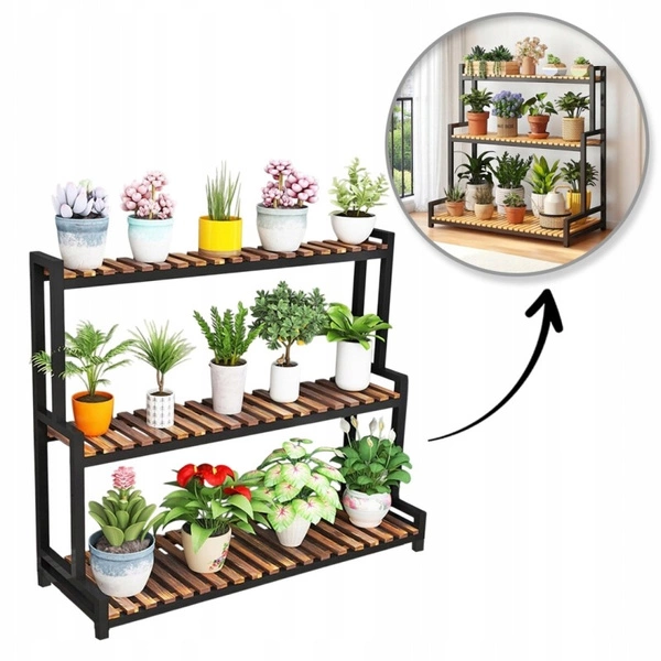 - Kwietnik, który pięknie wyeksponuje Twoje rośliny. Dzięki 3 półkom pomieści sporą ilość doniczek. Stwórz swoją własną kwietną kompozycję! Perfekcyjnie sprawdzi się na balkonie, tarasie, ogródku jak i wewnątrz domu.