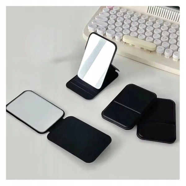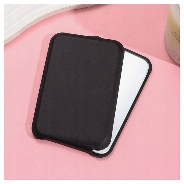 - Lusterko kosmetyczne w ekoskórze, otwierane, strojące, do torebki czarne. Posiada zawias pozwalający na ustalenie kąta lusterka. Wymiary: Wysokość: 10,8cm, Szerokość 7cm