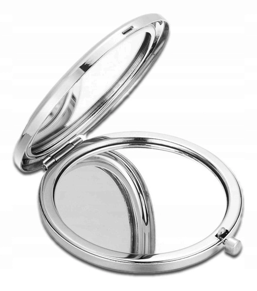 - Lusterko kosmetyczne otwierane. Posiada zawias pozwalający na ustalenie kąta lusterka. Wykonane z metalu. Wymiary: średnica: 7,4cm.