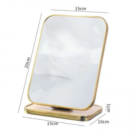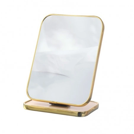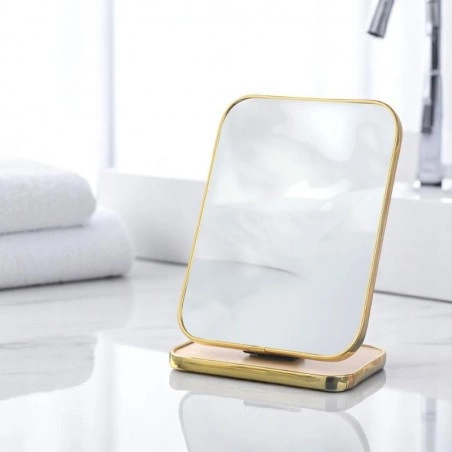 - Jednostronne lusterko kosmetyczne stojące złote XL. Posiada zawias pozwalający na ustalenie kąta lusterka. Nie zniekształca. Uniwersalny kolor sprawi, że dopasujesz go do większości wnętrz. Materiał: metal, szkło.