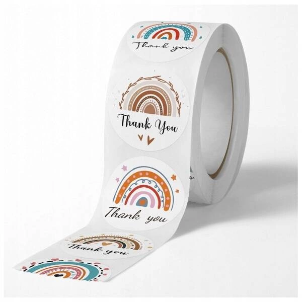 ECARLA naklejki na taśmie Thank You 25mm Tęcza NNK10 500szt