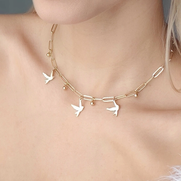 - Naszyjnik ze stali nierdzewnej platerowanej 14 karatowym złotem. Świetnie pasuje do eleganckich, jak również do codziennych stylizacji. Elegancki dodatek na każdą okazję. Wymiary: Długość łańcuszka: 39cm, długość dłuższego 43cm + 5,5cm regulacji,
