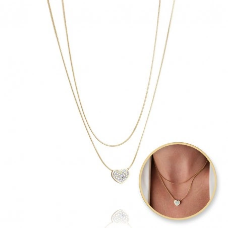 ECARLA naszyjnik podwójny ze stali szlachetnej pozłacanej SERCE NST1488