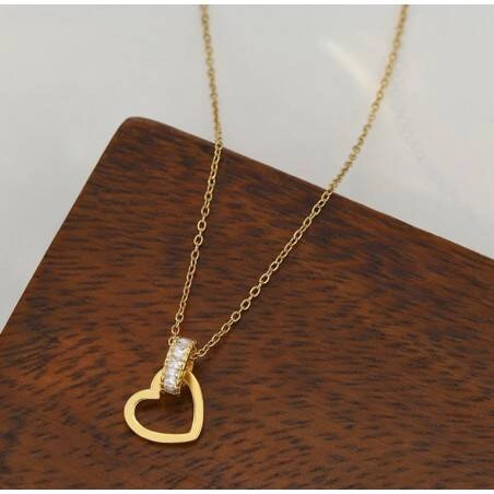 ECARLA naszyjnik ze stali szlachetnej platerowanej 14k złotem SERCE NST2112