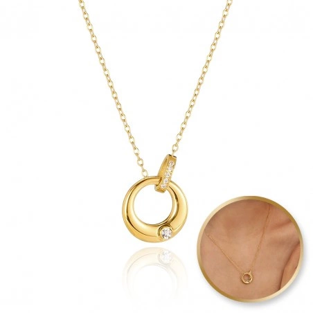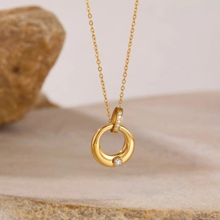 ECARLA naszyjnik ze stali szlachetnej pozłacanej KÓŁKA cyrkonie NST2192