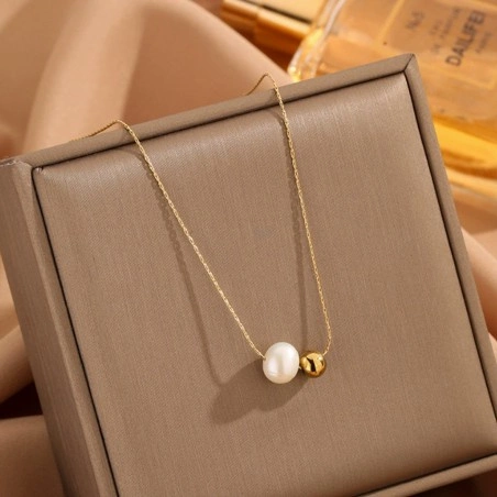 ECARLA naszyjnik ze stali szlachetnej pozłacanej KULKA PERŁA NST2153