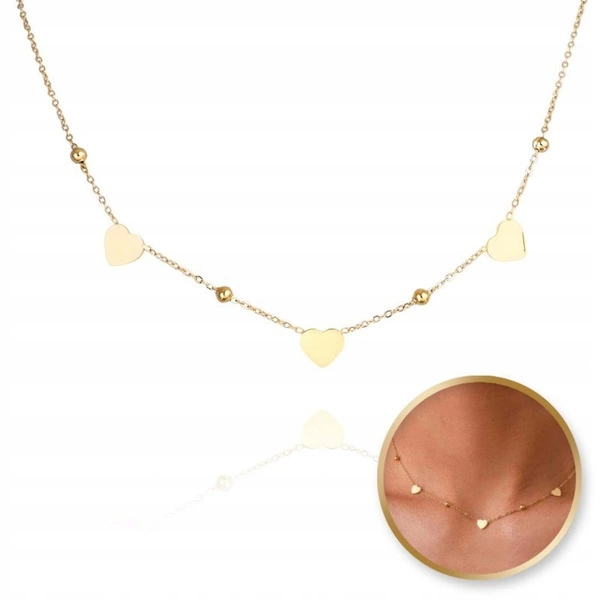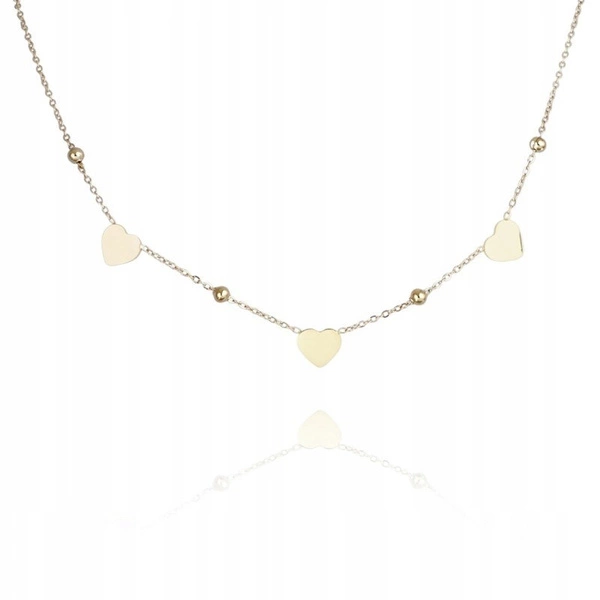 ECARLA naszyjnik ze stali szlachetnej pozłacanej KULKI SERCA NST2033