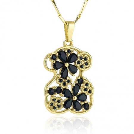 ECARLA naszyjnik ze stali szlachetnej pozłacanej MIŚ z czarną cyrkonią NST2231