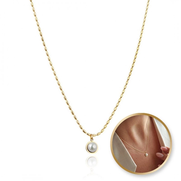 ECARLA naszyjnik ze stali szlachetnej pozłacanej PERŁA NST2181