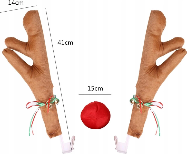 - Ozdób swój samochód na święta, wprowadzając magiczną atmosferę z dekoracją w postaci rogów i nosa renifera! Dekoracja podczas zimowego sezonu. Wymiary: Rogi: 41cm x 14cm, Nosek: 15cm