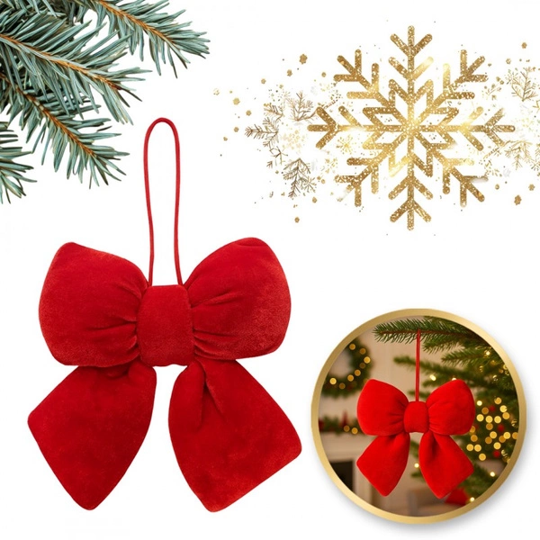 - Ta urocza dekoracja wprowadzi wyjątkowy akcent do każdego pomieszczenia. Jest trwała i zachowuje swój kształt, dzięki czemu będzie cieszyć oko przez cały sezon świąteczny. Wymiary: Długość sznurka: 9cm, Wymiary kokardy: 14cm x 12,5cm x 4cm