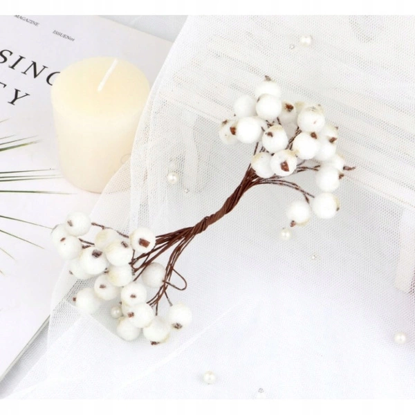 ECARLA Ozdoba Świąteczna wiązka OWOCE JARZĘBINY 20szt Białe GLZ01