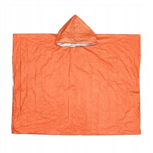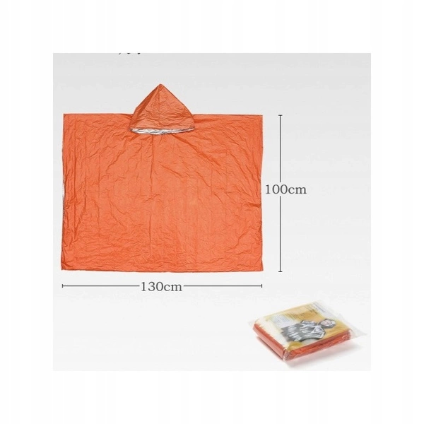 - Dwustronna konstrukcja peleryny: przód jest wodoodporny i ciepły. Odblaskowy materiał z tyłu. Folia aluminiowa PE sprawia, że ponczo przeciwdeszczowe jest elastyczne i odporne na rozdarcie. Wymiary: 130x 100cm. Waga: 59g / 72g