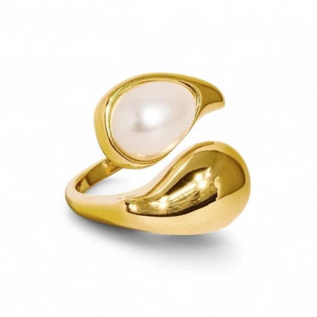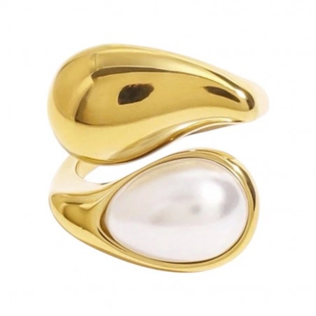 ECARLA pierścionek ze stali chirurgicznej platerowanej złotem KROPLA PST946