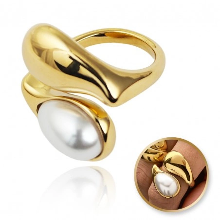 - Pierścionek platerowany 14-karatowym złotem. Wykonany ze stali nierdzewnej odpornej na warunki atmosferyczne, nie ulega korozji, nie rdzewieje, nie śniedzieje. Rozmiar: uniwersalny, regulowany. Szerokość: 1,3cm.