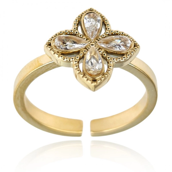ECARLA pierścionek ze stali chirurgicznej platerowanej złotem KWIAT PST949